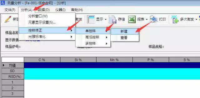 單擊“分析”—“控樣修正”—“單控樣”——“新建”